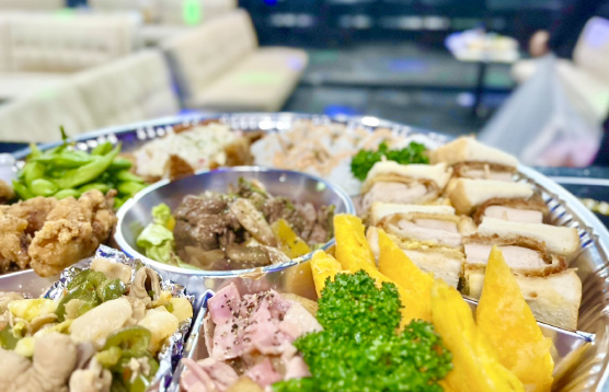 3日前までのご予約で、フードの手配も可能です。提携するケータリング業者から、用途やご予算に応じたメニューをご提案させていただきます。